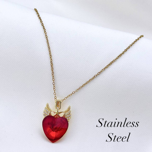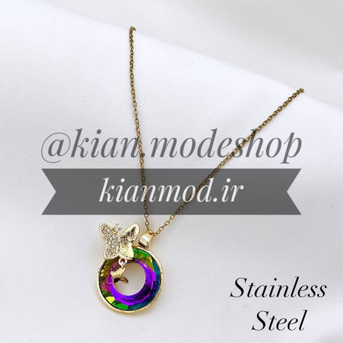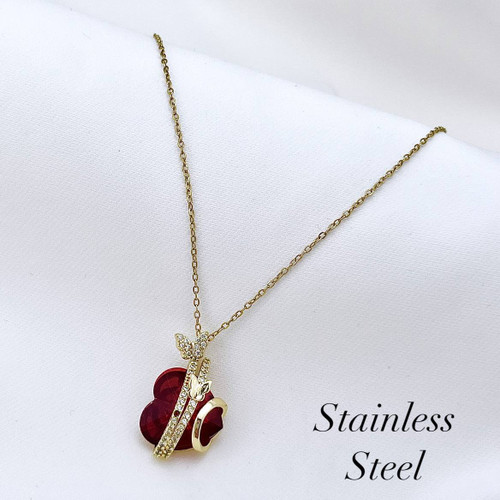 گردنبند استیل نگین قرمز شکل پروانه 🦋