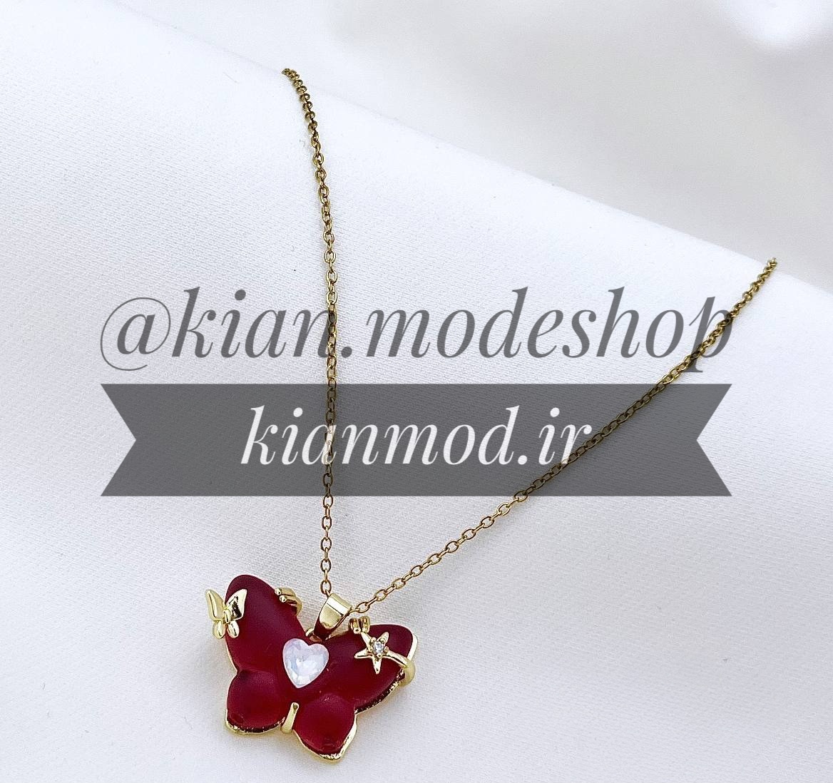 گردنبند استیل نگین قرمز شکل پروانه 🦋